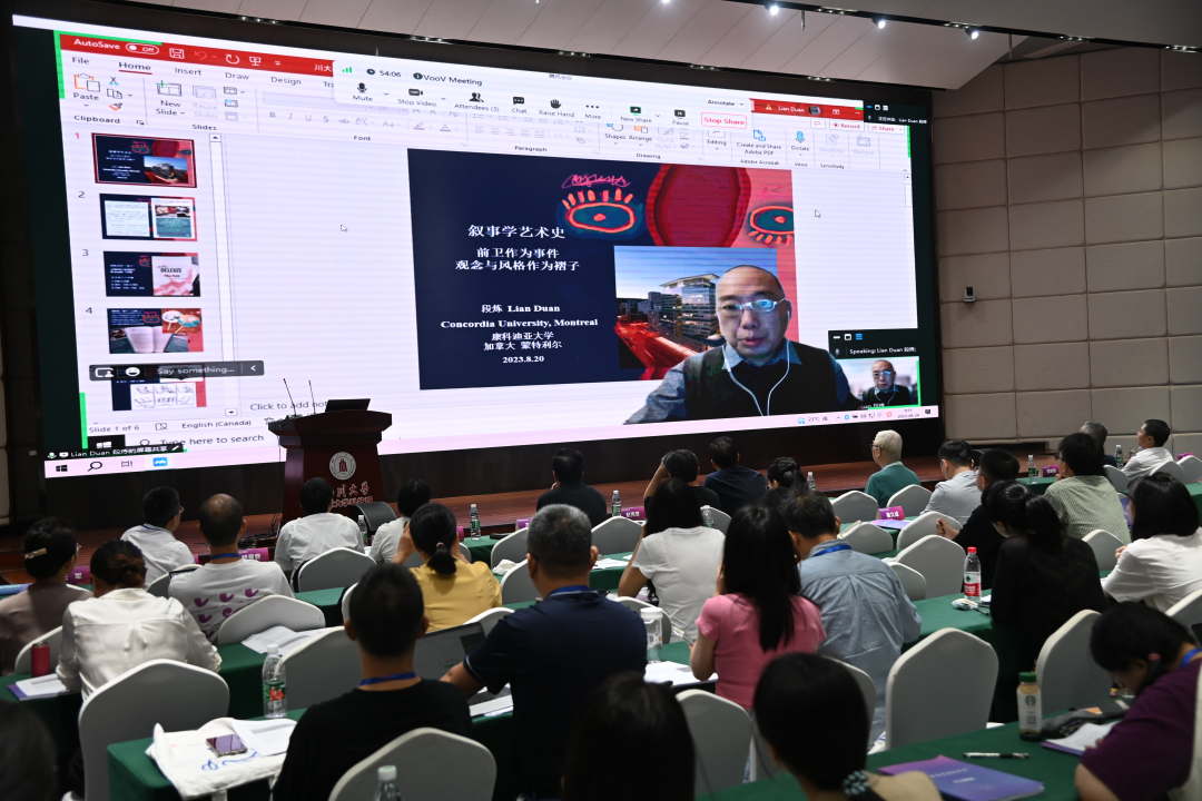 20日上午举办了大会学术报告的下半场,由苏州大学王军教授主持,南京师范大学余红兵教授评议。来自美国马凯特大学的Curtis Carter、南京大学艺术国内自拍的赵奎英、浙江大学传媒与国际文化国内自拍的李杰、瑞典林奈大学的Michael Ranta、意大利都灵大学的Massimo Leone和加拿大康考迪亚大学的Duan Lian采用“线上+线下”的方式分享了他们的学术报告。